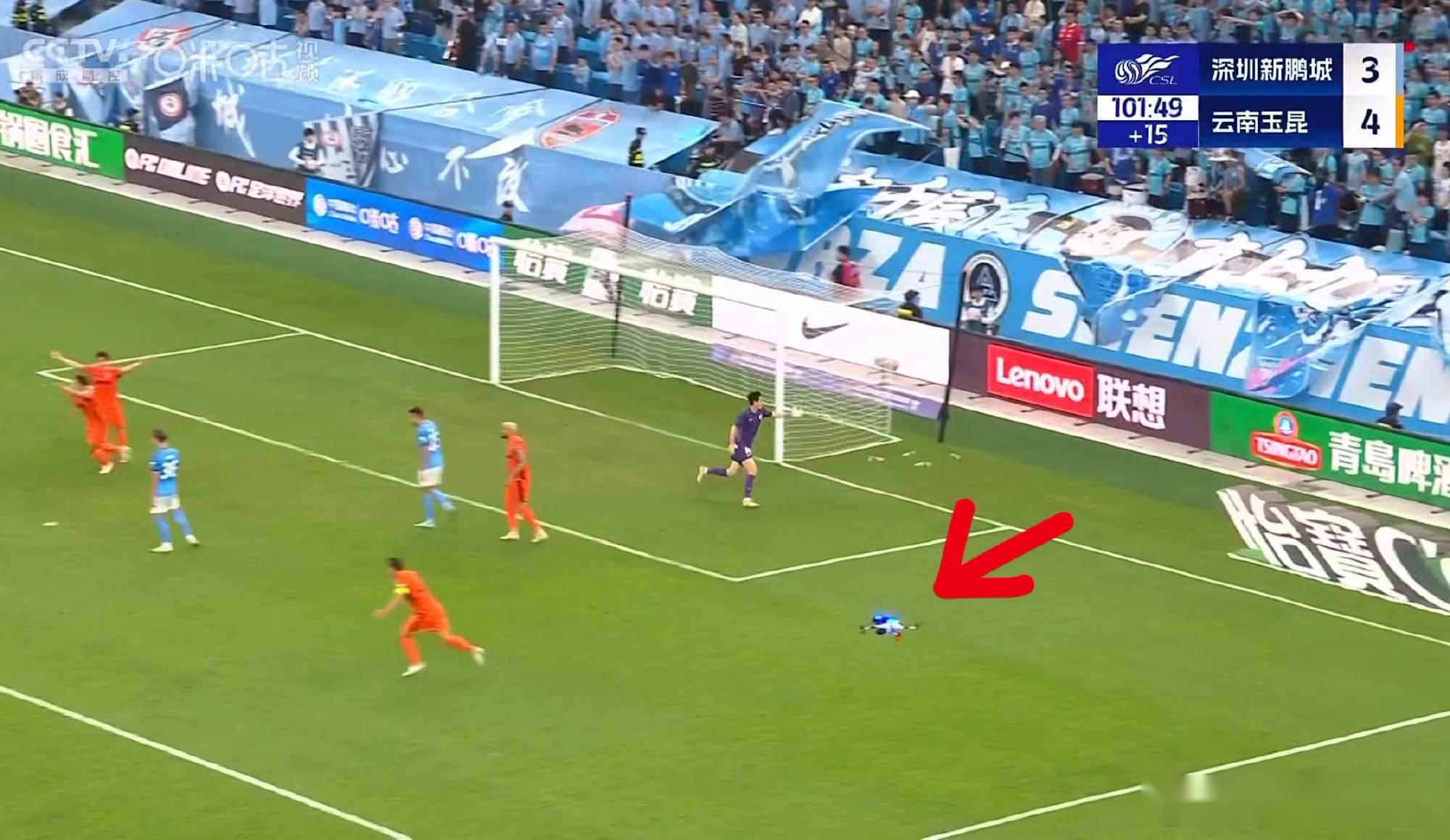 新鹏城主场vs云南比赛中出现无人机,按规定应中断比赛