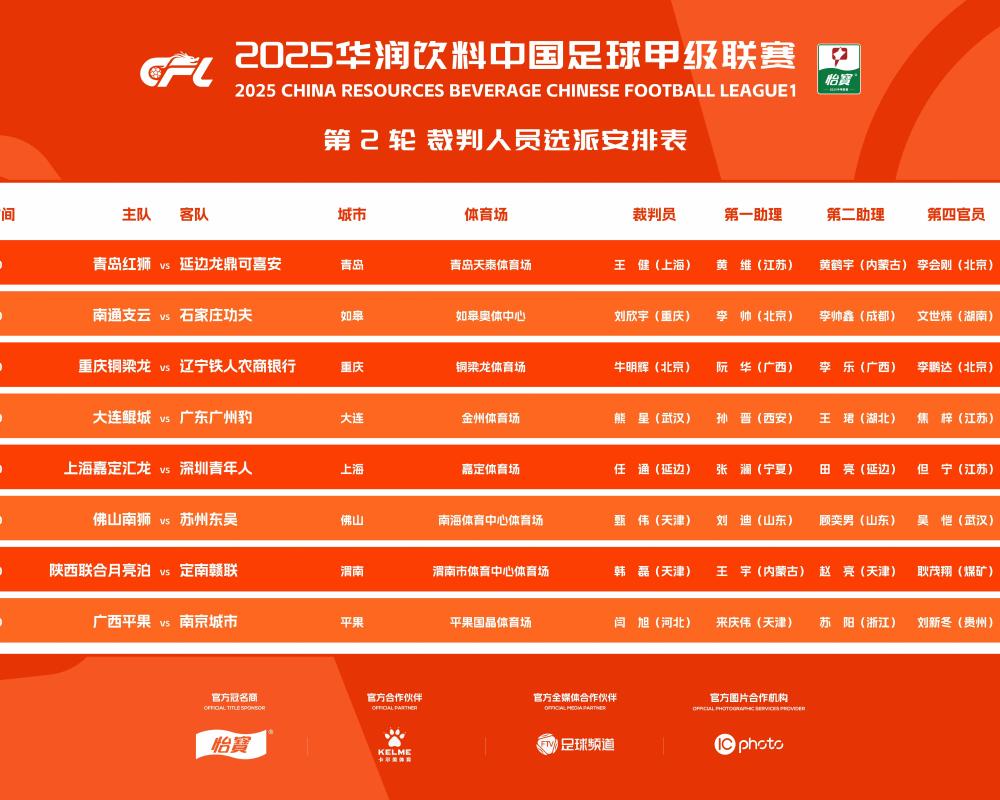 北京时间3月29日,中甲第2轮裁判名单出炉,牛明辉执法焦点战重庆铜梁龙vs辽宁铁人。